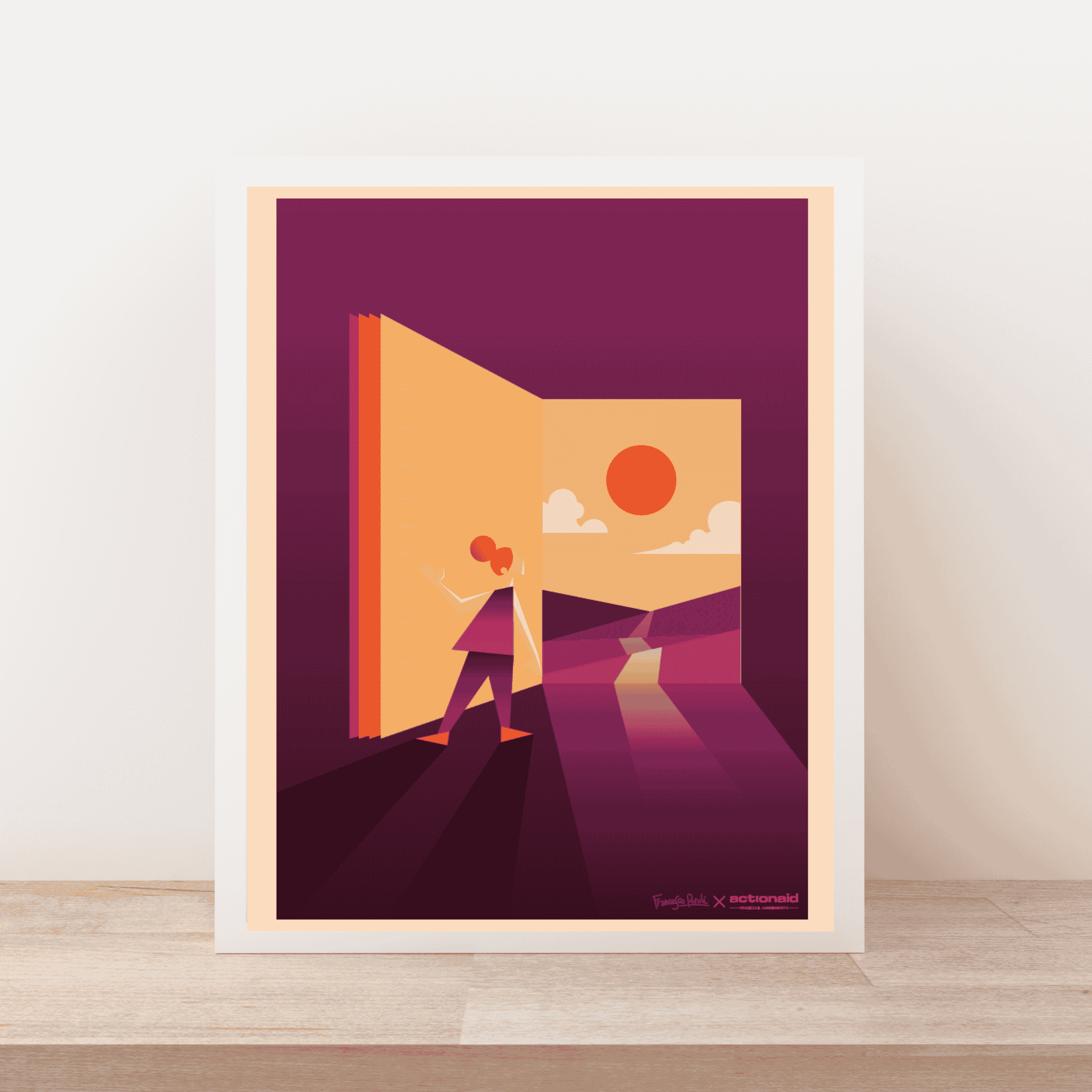 Il poster “Opening Futures” è un’illustrazione vibrante e contemporanea che celebra il potere trasformativo dell’istruzione.