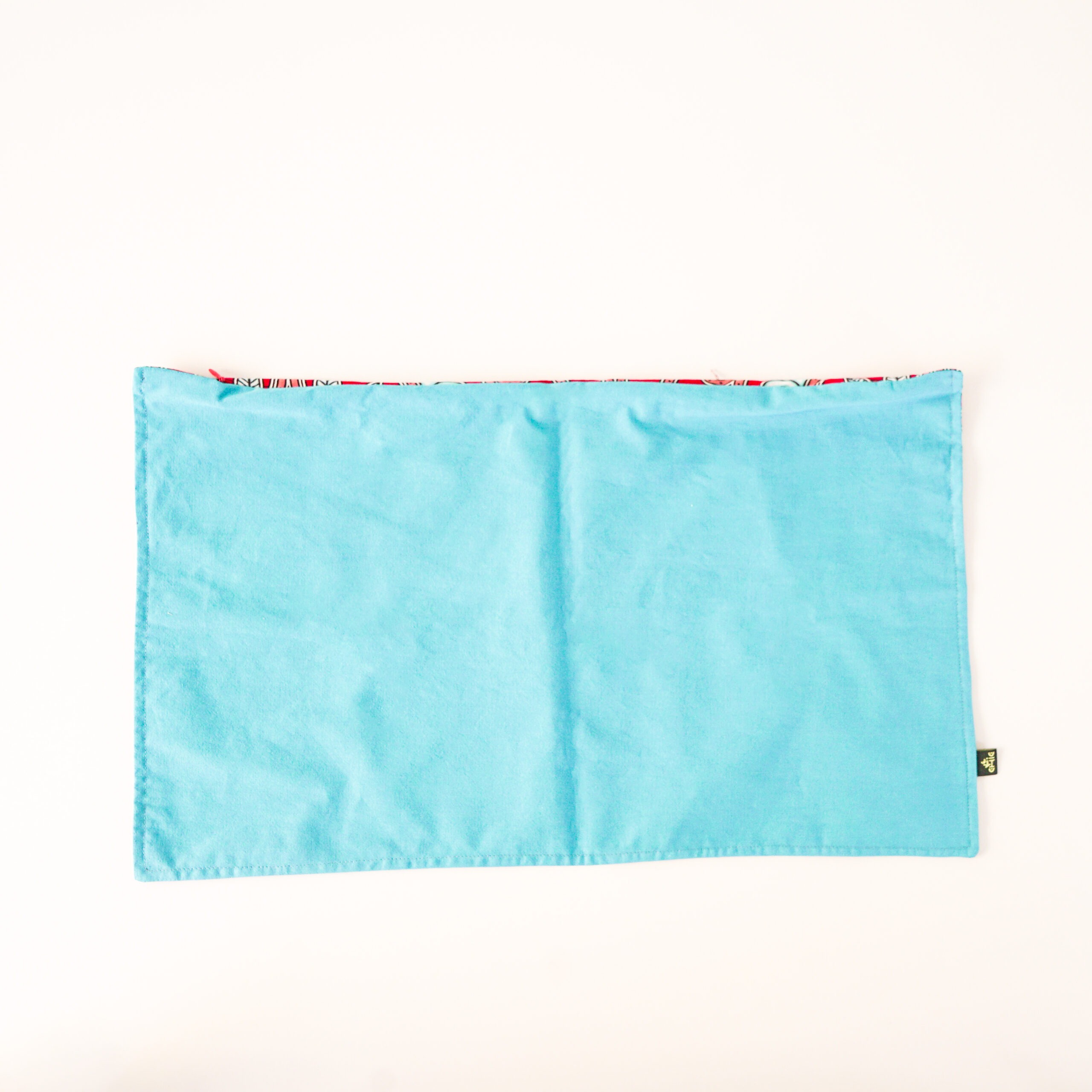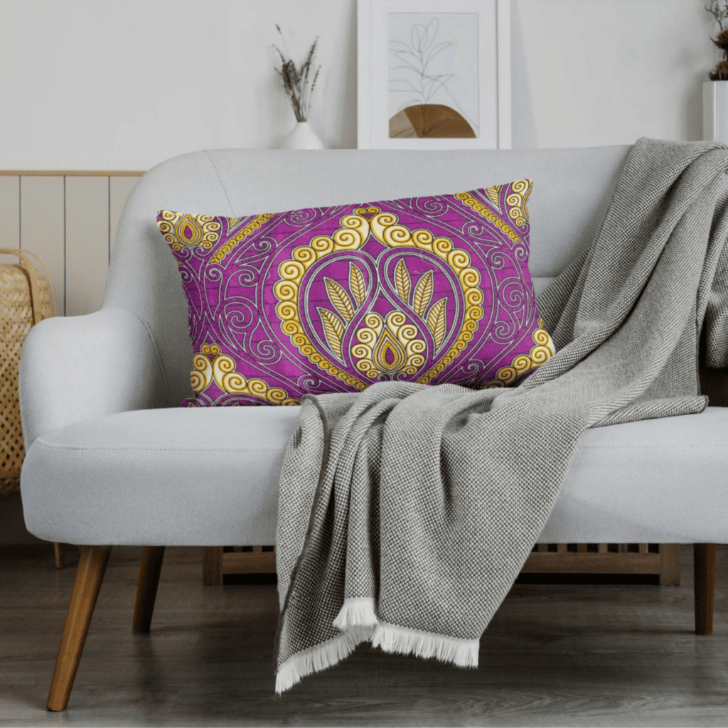 Realizzate a mano dall’atelier italo-africano Kechic, queste due federe double face combinano colori e fantasie diverse per un effetto vivace e originale.