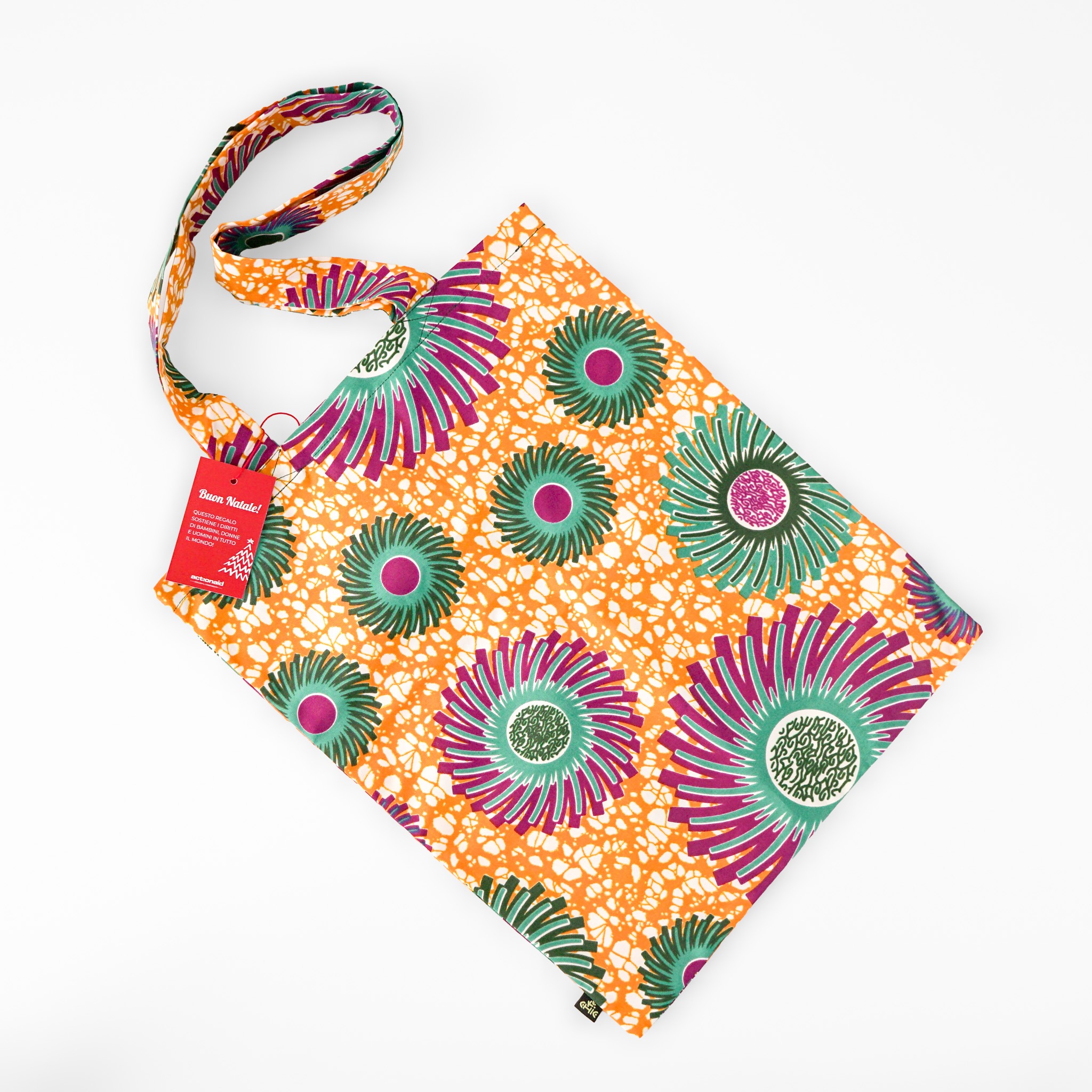 La shopper solidale in tessuto wax è un regalo originale con fantasie vivaci e colorate.